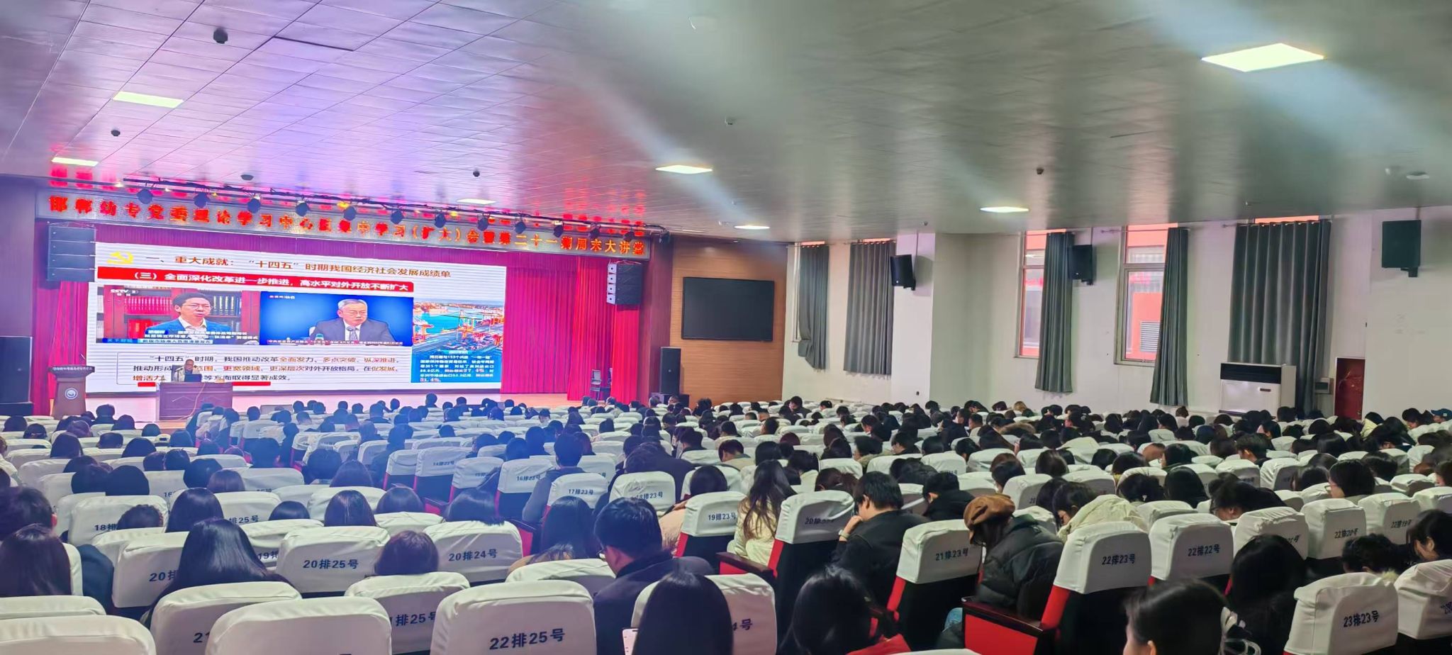 12月1日下午,我校在恩元楼一楼学术报告厅举行党委理论学习中心组集中学习(扩大)会暨第二十一期周末大讲堂,河北工程大学马克思主义学院三级教授,法学硕士,河北省精品课程、视频开放精品课程主讲教师孟令择应邀到校讲座。学校领导班子成员、中层干部以及主校区无课教师、学生会干部、入党积极分子650人参会,大名校区全体教职工通过钉钉线上直播收看。活动由校党委副书记王敬献主持。